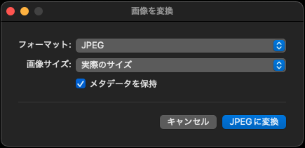 - フォーマット:JPEG、サイズ:元のサイズ を選んで「変換」