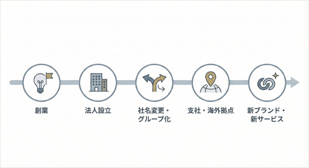 - 社名変更や持株会社化など、大きな組織再編のタイミング
