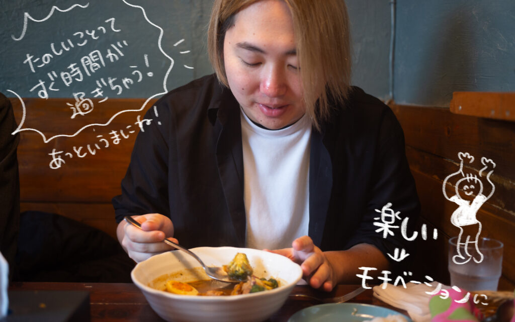 今回はカレーを味わいながら、仕事のこと、学びのこと、そしてこれからの挑戦について伺いました!