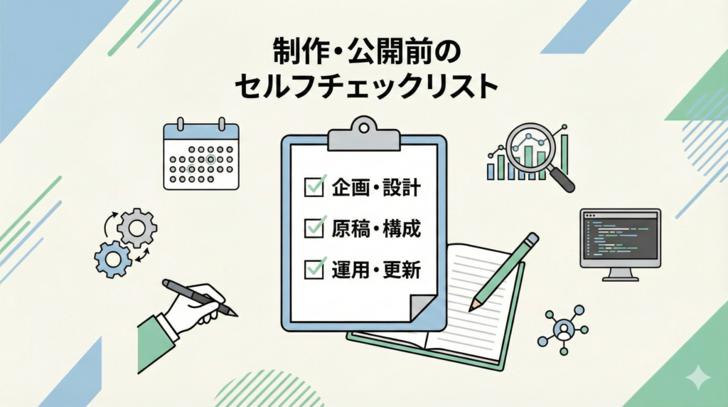 最後に、制作の各工程で振り返りに使えるリストを用意しました。企画段階での整理や、公開前の最終確認にご活用ください。