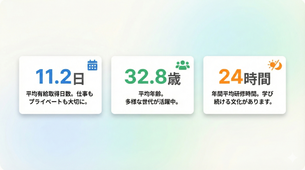 そこで、平均年齢や有給取得率といった客観的な数字が、信頼を裏付ける材料として機能します。