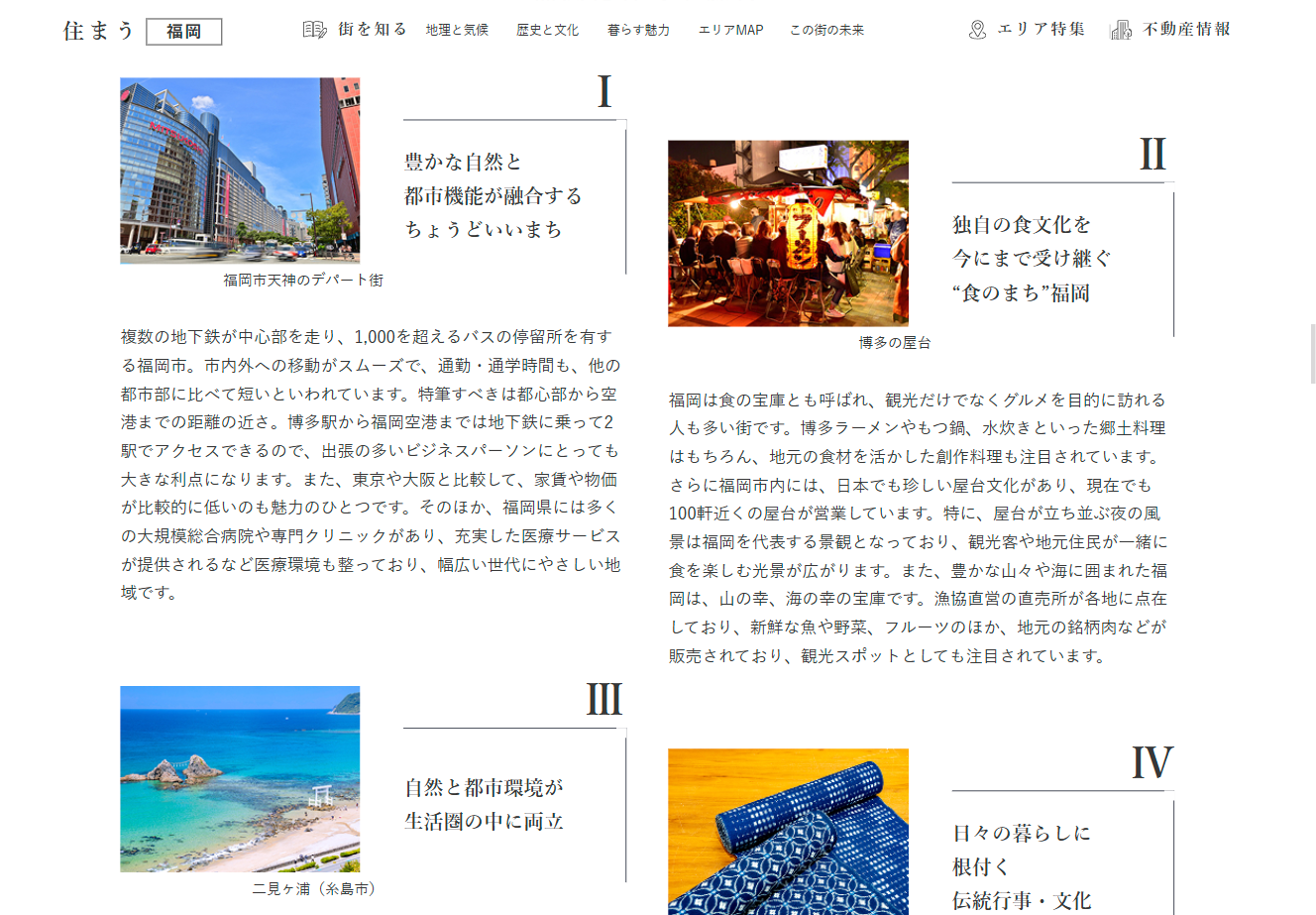 大和ハウス工業さまによる、住まう場所として魅力を発信する地域紹介コンテンツ[住まうシリーズ]のリニューアルを担当しました。シリーズ全体のコンセプト設定とベースとなるエリアのウェブサイトを公開後に、これまで北海道・沖縄・福岡・京都・滋賀・金沢の各エリアへ展開を拡大しています。