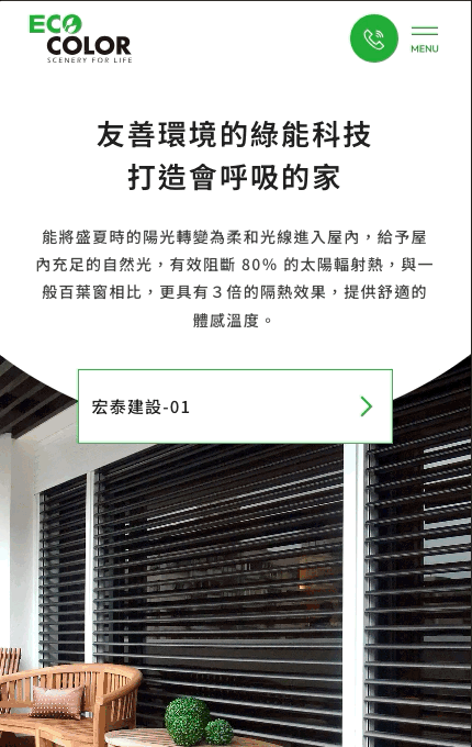 綠風百葉(EcoColor)は、環境保護、省エネ、美学を兼ね備えたブラインドソリューションを長年にわたり提案してきたブランドであり、建築空間における快適性とサステナビリティの調和を目指しています。近年のユーザーニーズやデジタルマーケティングの進化に対応するため、親会社が自動化展示会に参加するタイミングに合わせて、公式ウェブサイトのリニューアルプロジェクトをスタートしました。