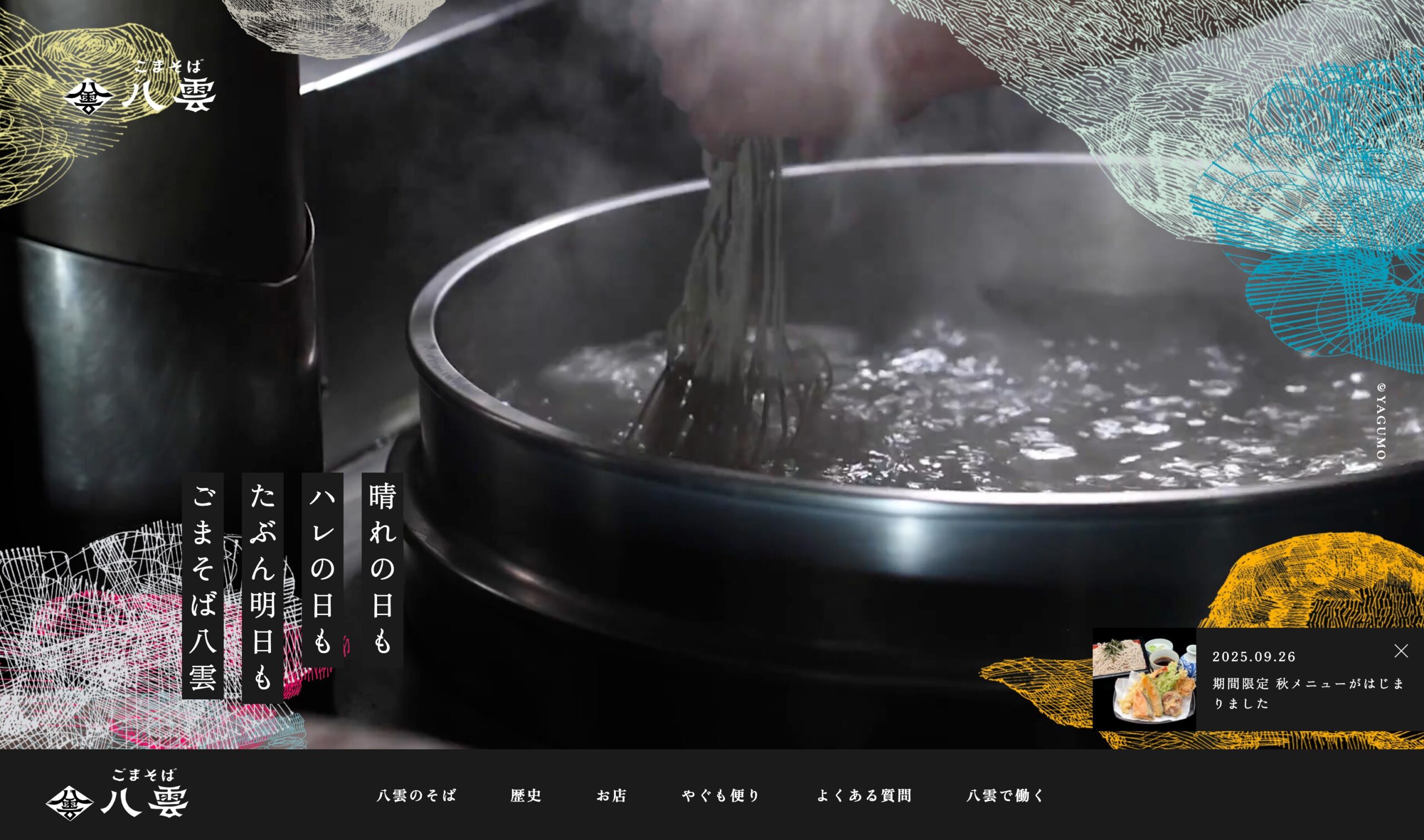 昭和49年創業、札幌が誇る「ごまそば」の名店、八雲。その前身である喫茶「銀の壺」から数えれば約80年、この街とともに歩んできた老舗蕎麦店のウェブサイトを、私たちGear8がリニューアルさせていただきました。
