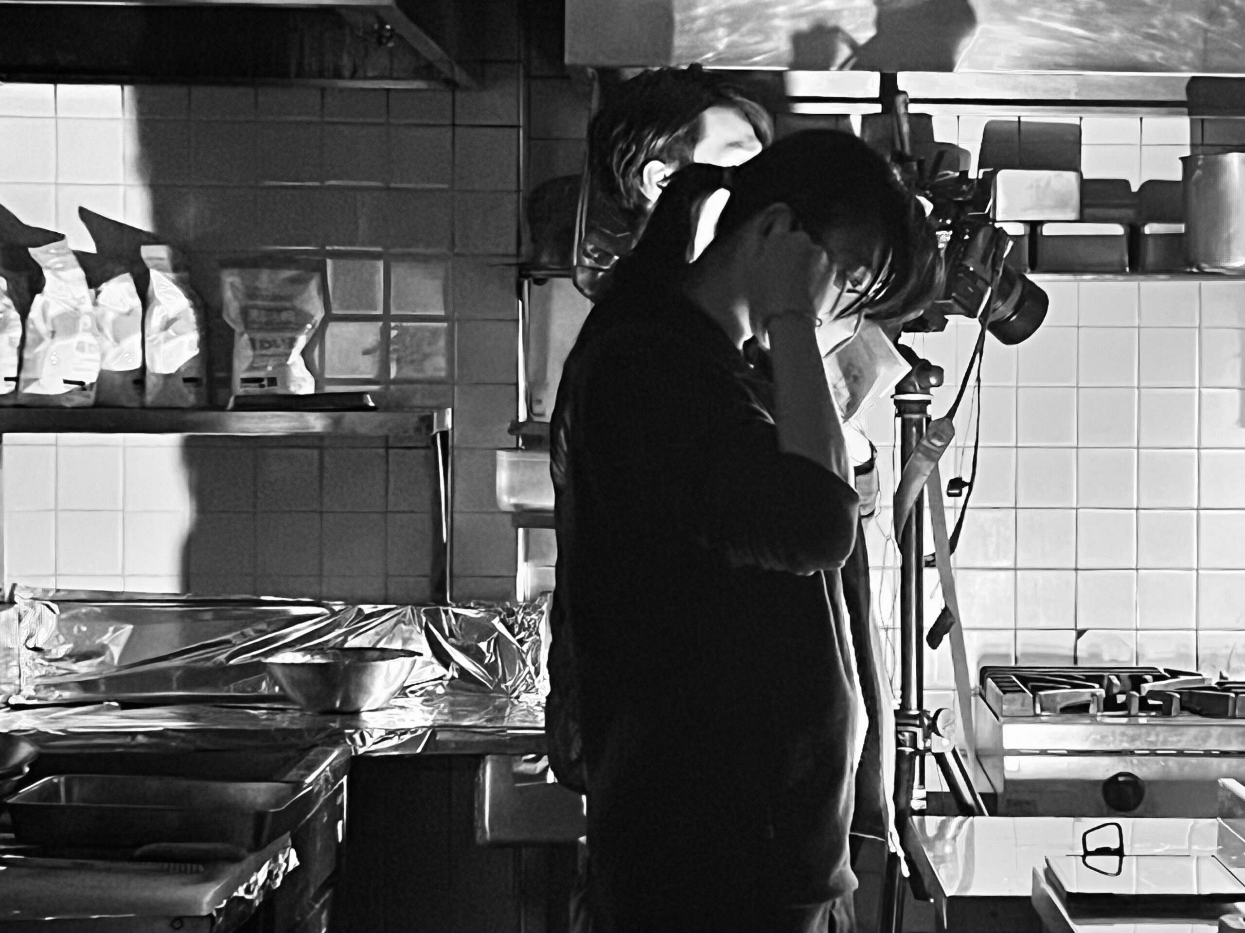 開店前と閉店後という、店舗にとって最も忙しい時間帯。それでも、にしりん様のスタッフの皆さんは驚くほど協力的でした。何度も繰り返し、撮影のための動作をしてくださる。特に蕎麦を茹でるシーンは難しく、閉店後の厨房で店長に何度も蕎麦を茹でていただきました。