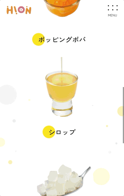 HiON株式会社は、台湾の食品原料メーカーが立ち上げた自社ブランドです。もともとはBtoB事業を中心に展開しており、目玉製品はシロップを包んだフルーツ風味のパール「ポッピングボバ(爆爆珠)」、そのほかエキスやシロップなどの原料も取り扱っています。現在、海外の主要市場はアメリカであり、日本にも支社を設立してブランド事業を拡大しています。日本市場ではタピオカへの親しみが深い一方で、ポッピングボバの認知はまだ低いため、今回のブランドサイトでは日本のユーザー向けに、革新的な食感、多様なアレンジ、そして食べる楽しさを訴求しています。