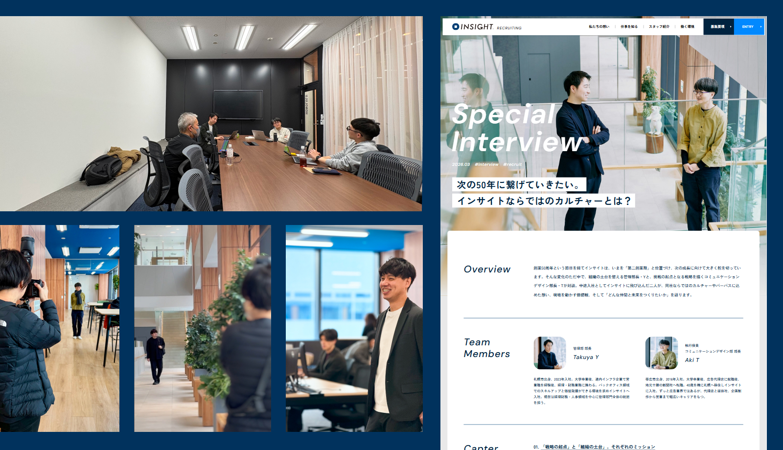 本プロジェクトは、単なるウェブサイトの作り替えではありません。インサイト様が50周年を機に策定された想いを、採用サイトというかたちでいち早く可視化し、求職者に届ける土台をつくるプロジェクトでした。現在進行中のコーポレートサイトのリニューアルも含め、これからもその歩みに伴走していきます。