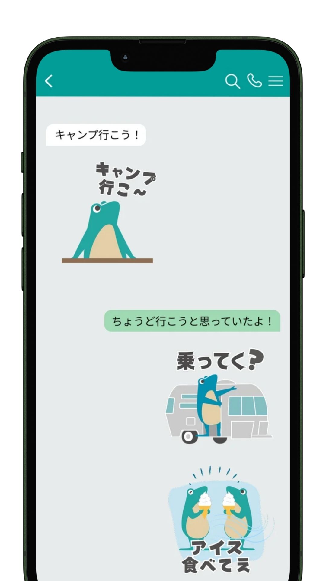 完成したスタンプは、北広島かえるキャンプ場の楽しい雰囲気をそのまま表現し、会話を盛り上げる新しいコミュニケーションツールとなっています。