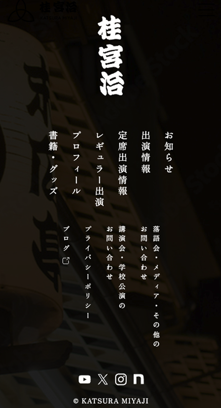 落語家・桂宮治(かつら みやじ)様のオフィシャルウェブサイトの制作を担当しました。