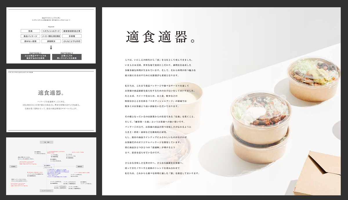 今回のリニューアルでは「コピー」「撮影」「コンテンツの追加」「デザイン」の4つの角度からブランディングを行ったのですが、「ブランディングをする」ということにおいてはどれも欠けてはいけないと考えておりました。