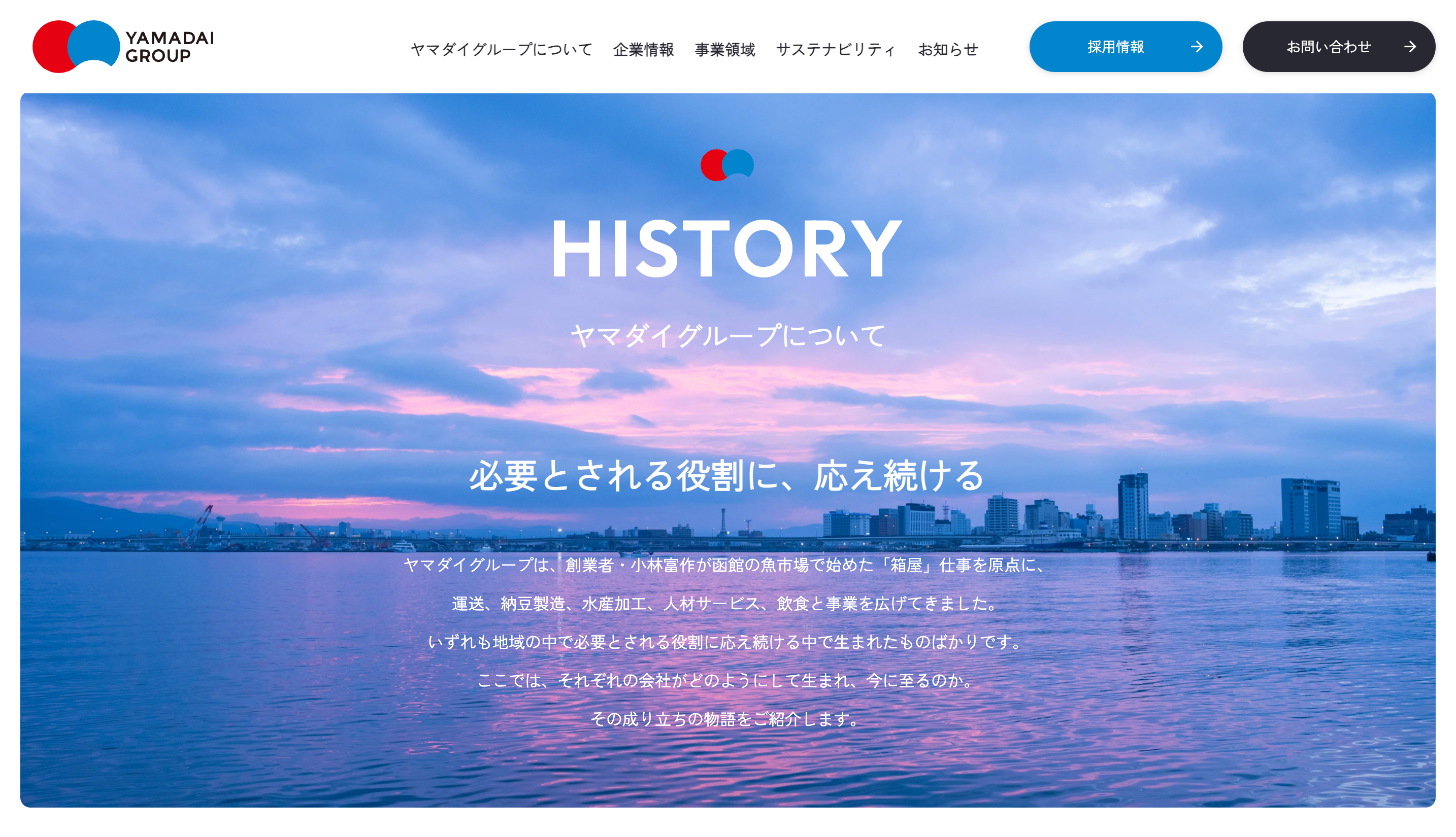 60年以上にわたり函館に根付き、地域とともに発展してきたヤマダイグループ。2025年の社名変更を機に、グループ全体のブランドを新たに見つめ直すプロジェクトが始まりました。ロゴの刷新とウェブサイトのリニューアルを通して、「これまで」と「これから」をつなぐ物語を形にしました。