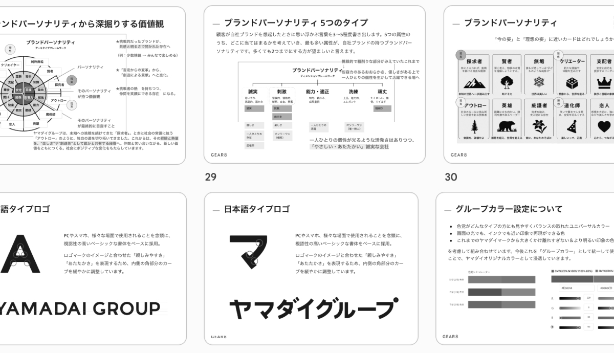 これまでのロゴが象徴してきたものを引き継ぎつつ、これからのヤマダイグループはどんな法人を目指すのか。「夢を描き、未知を進み、喜びを創造する。」という企業理念を読み解きながら、ブランドの現状と未来像を言葉に置き換え、ブランドパーソナリティを導き出しました。